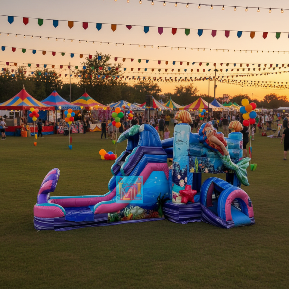 Castello Gonfiabile Commerciale a Tema Sirena con Scivolo d'Acqua, Combo Castello Gonfiabile per Bambini in Vendita