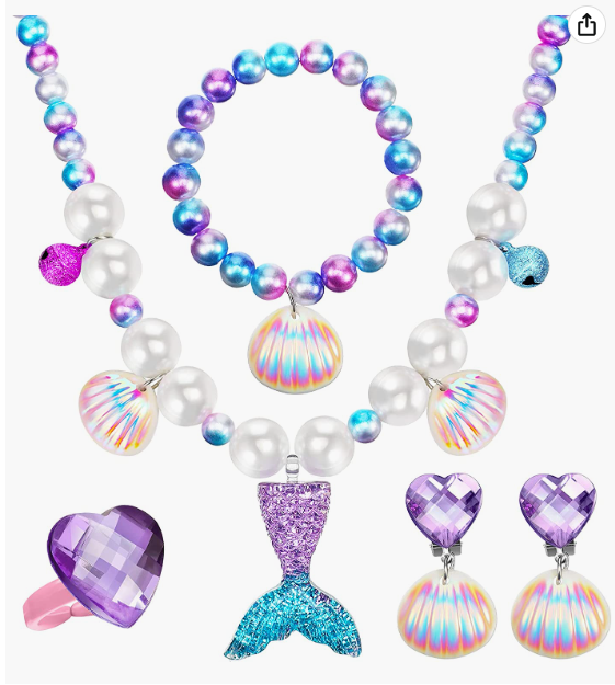 Collana a sirena bracciali Set di clip per l'orecchio per bambini la principessa delle bambine finta di giocare a sirena decorazioni per costumi da festa regalo