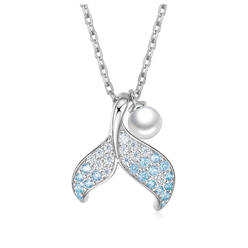 Mermaid Tail Pendant With Imitation Pearl And Blue Crystals Silver Plated Alloy Women's Fashion Jewelry Gift