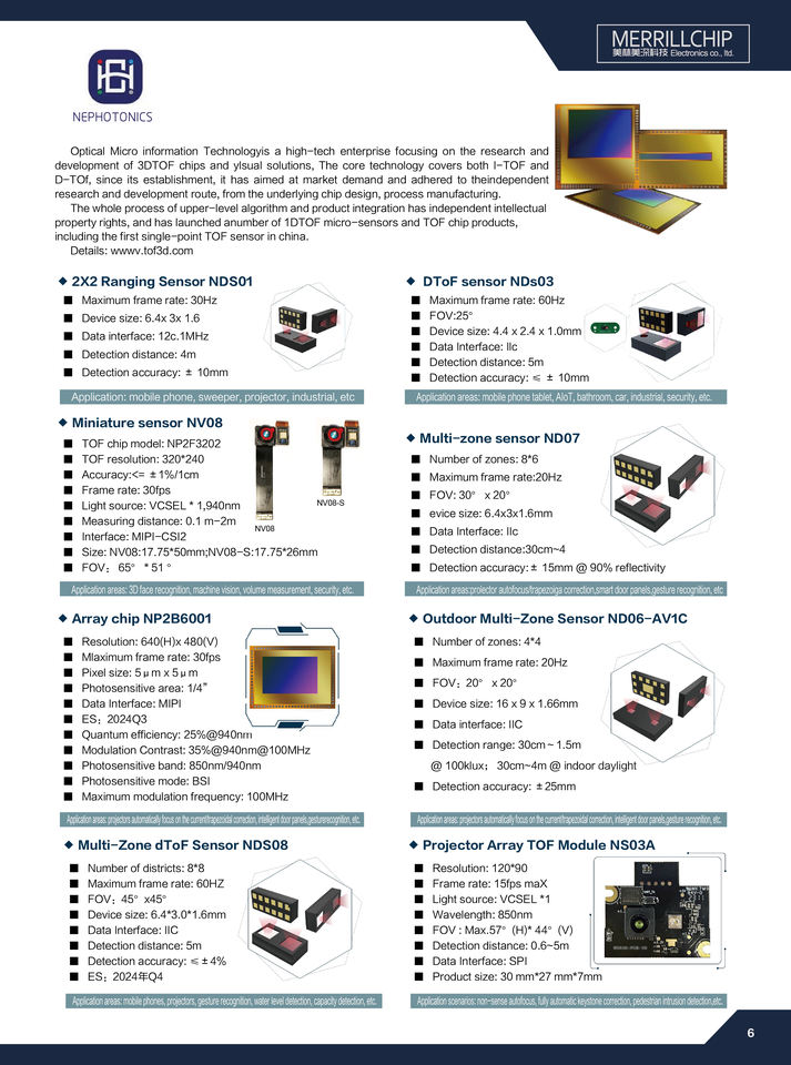 Merrillchip originale IC Area array chip risoluzione i-Tof 320(H) x 240(V) 30fps interfaccia NP2F3202 riconoscimento gestuale
