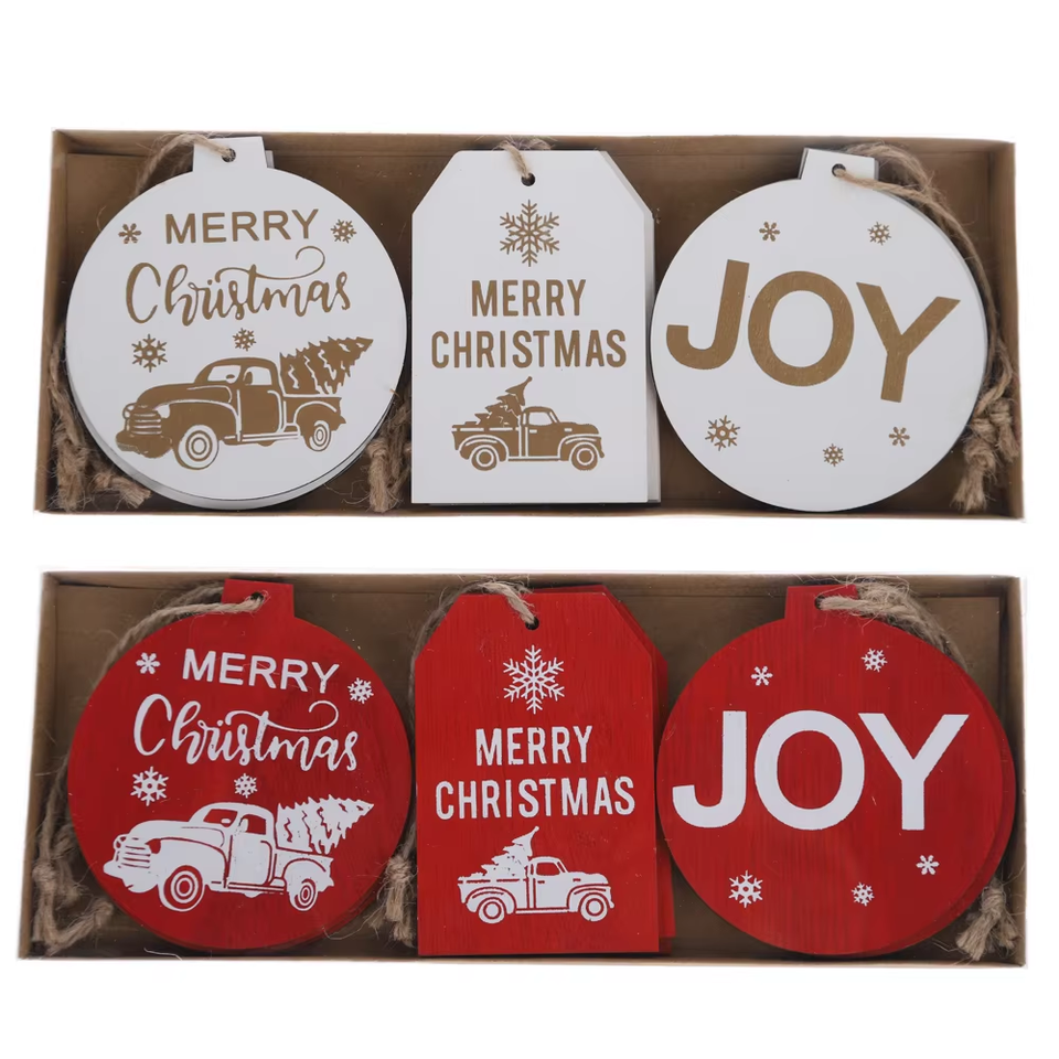 Buon natale gioia auguri a casa festa decorazioni legno albero di natale ornamento appeso