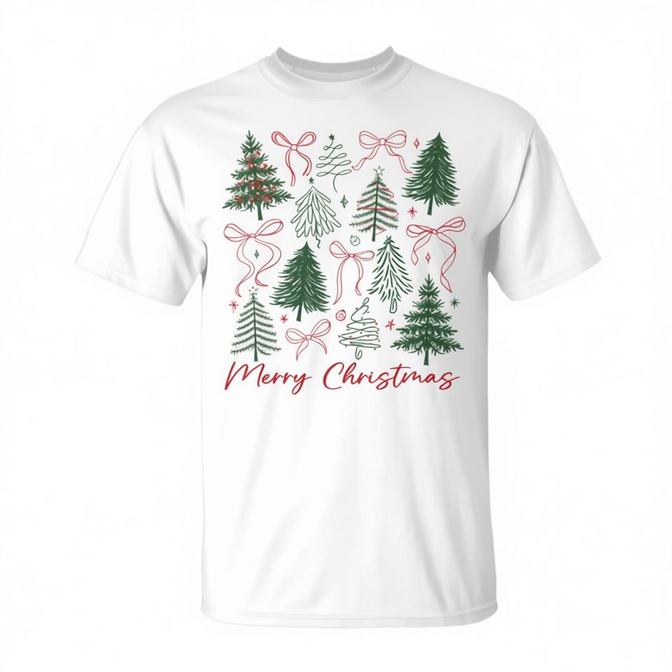 T-shirt con fiocco natalizio, design rosa e verde, camicia da donna per le vacanze