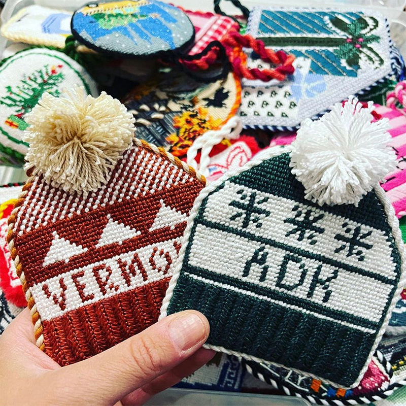Merry Christmas Wishes Factory Wholesale Durable Polyester/Cotton Christmas Tree Decorative Charm Needlepoint Ornaments 4x4''