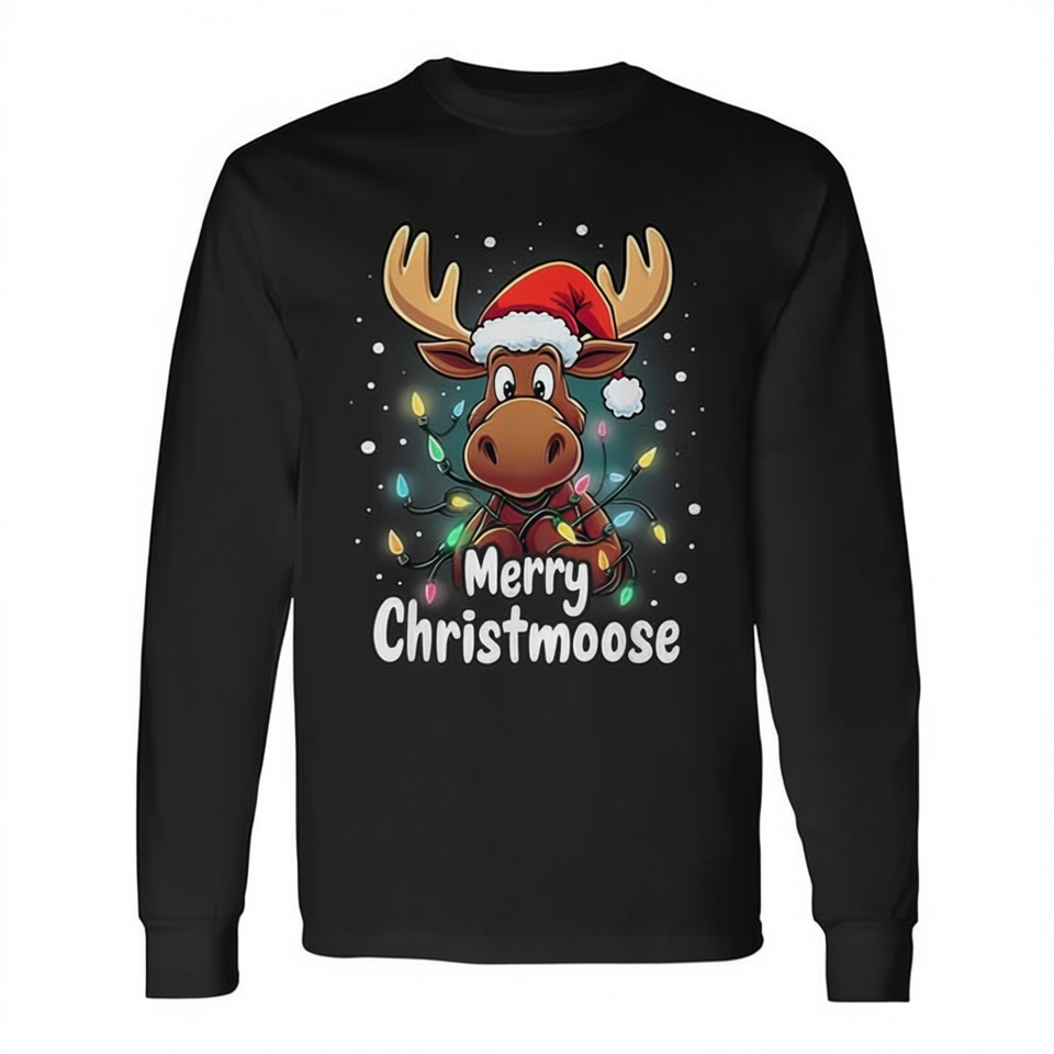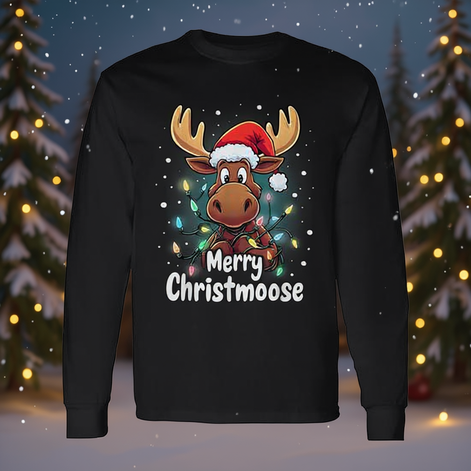 Maglietta a maniche lunghe con luci natalizie Merry Christmoose Cute Moose