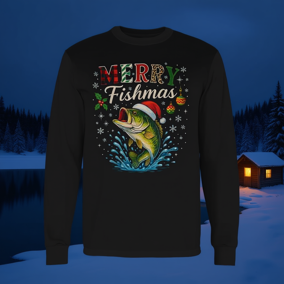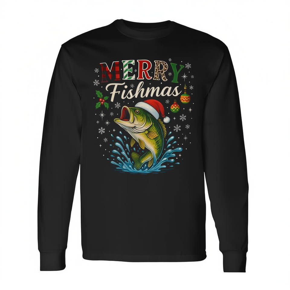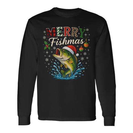Maglietta a maniche lunghe Merry Fishmas Santa Fishing Christmas