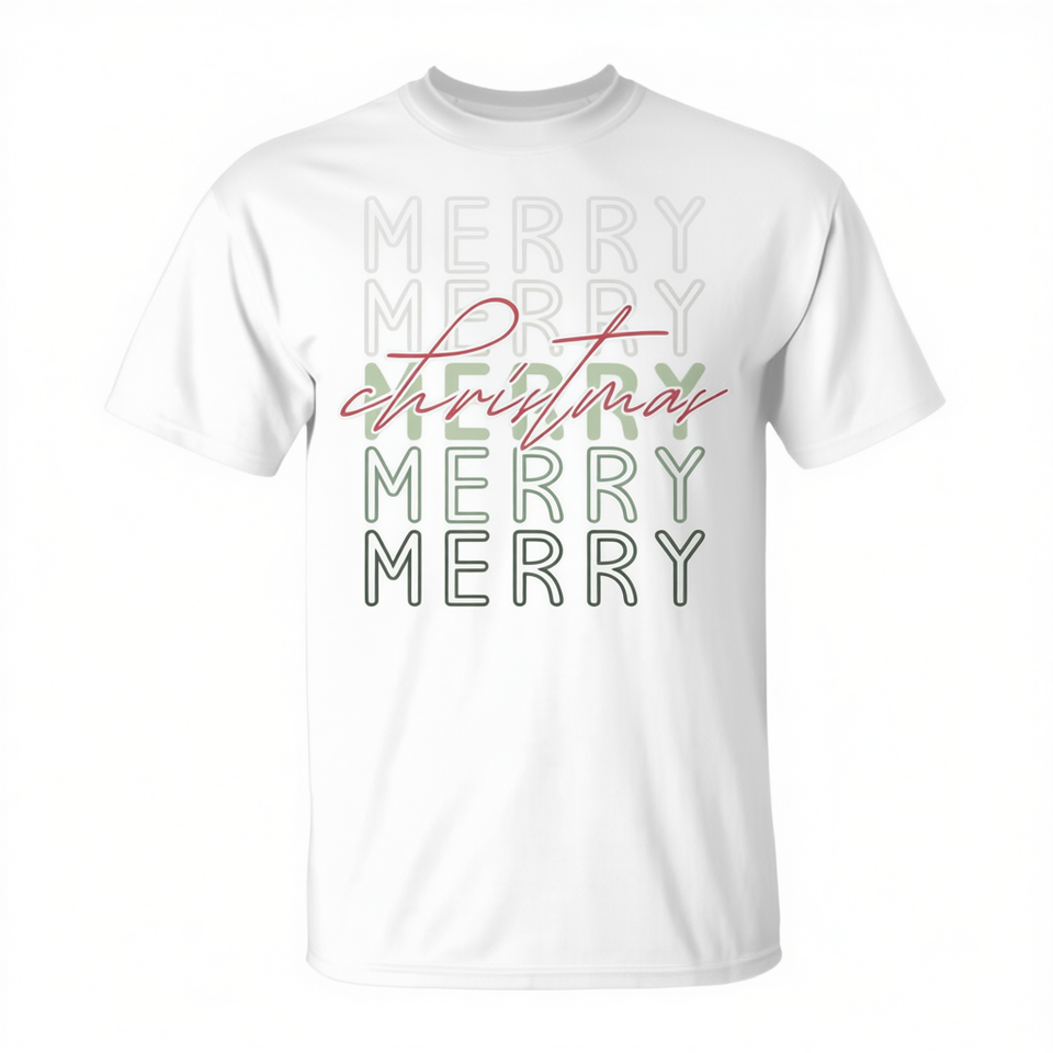 T-shirt natalizia retrò Merry Merry Christmas bianca unisex per adulti taglia media
