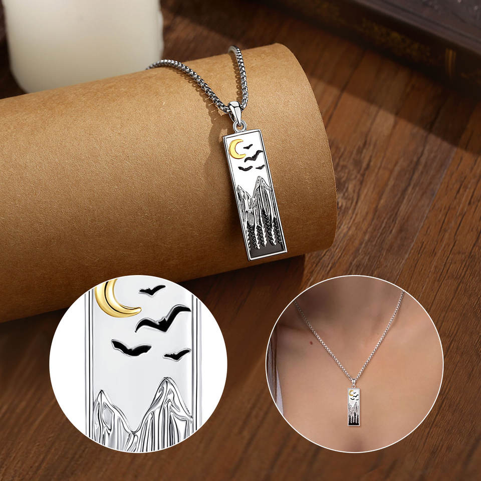 Collana Merryshine in Rame con Motivi Forestali, Montani, Oceanici e Naturali per Sciatori, Escursionisti, Campeggiatori, Alpinisti e Amanti della Natura, Gioielli in Ossidiana