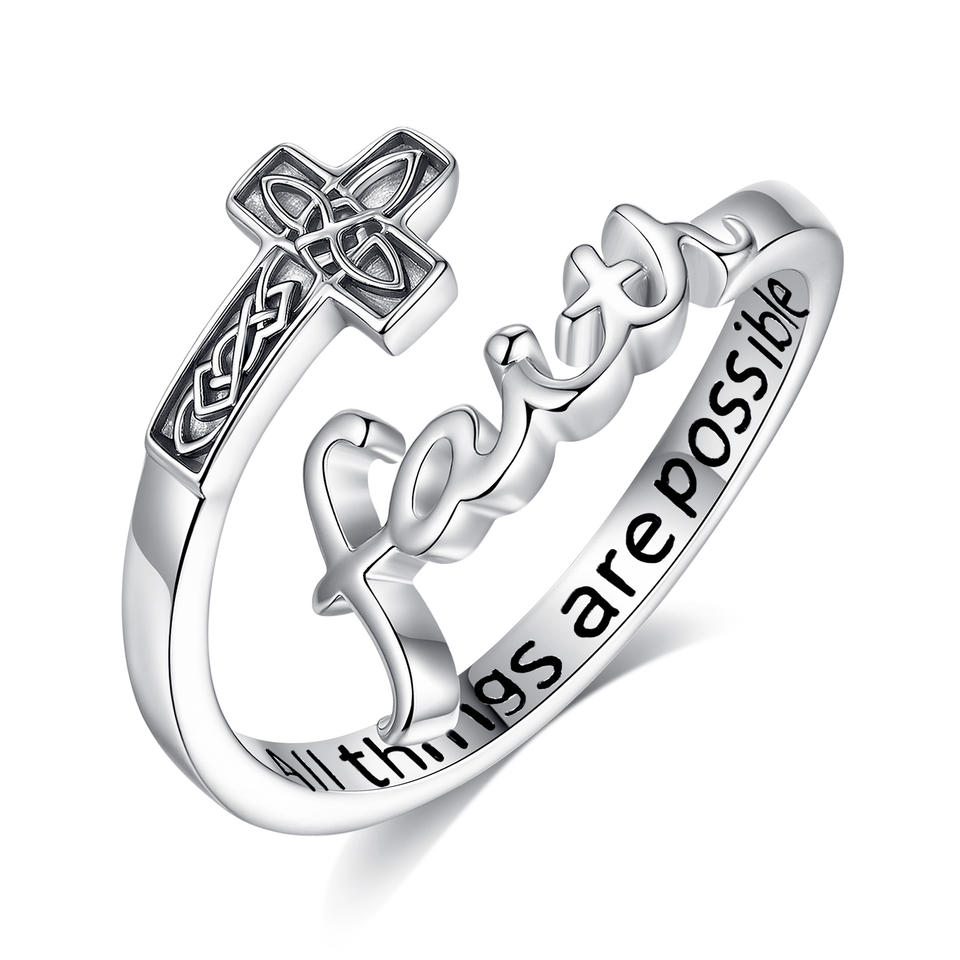 Merryshine Hope Faith Celtic Cross Rings 925 Sterling Silver Open Statement Adjustable Hope Love Eternity Band Promise Ring