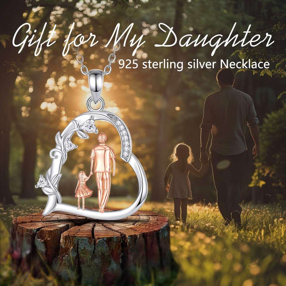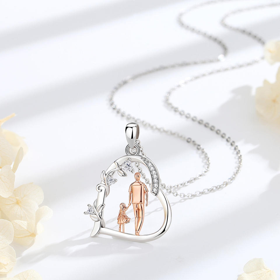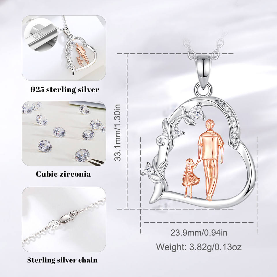 Merryshine S925 Sterling Silver Family Love Heart Our Dad Father and Daughter Necklace Jewelry Pendant
