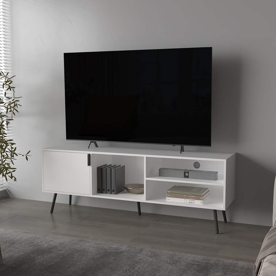 Mescal bianco TV Stand con porta e Open Storage multi-Storage unità multifunzionale