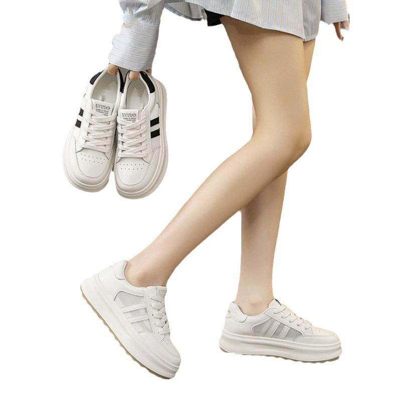 Sneakers basse in Mesh interne che aumentano l'altezza 2025 donne estive in pelle sintetica traspirante nera/kaki comode gambe da esposizione