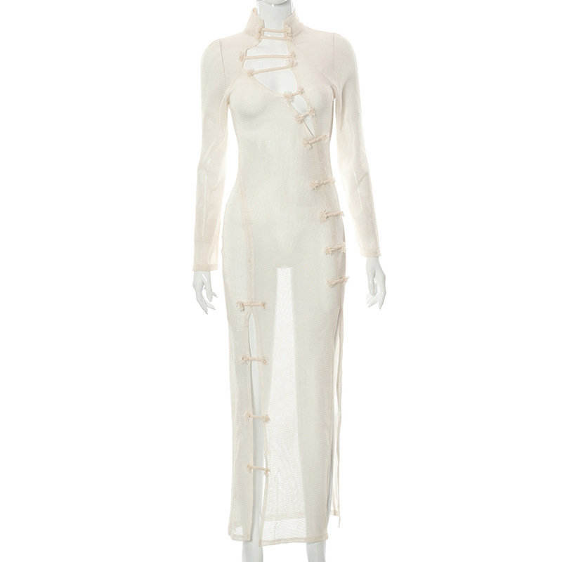 Abito Cheongsam con Inserti in Rete