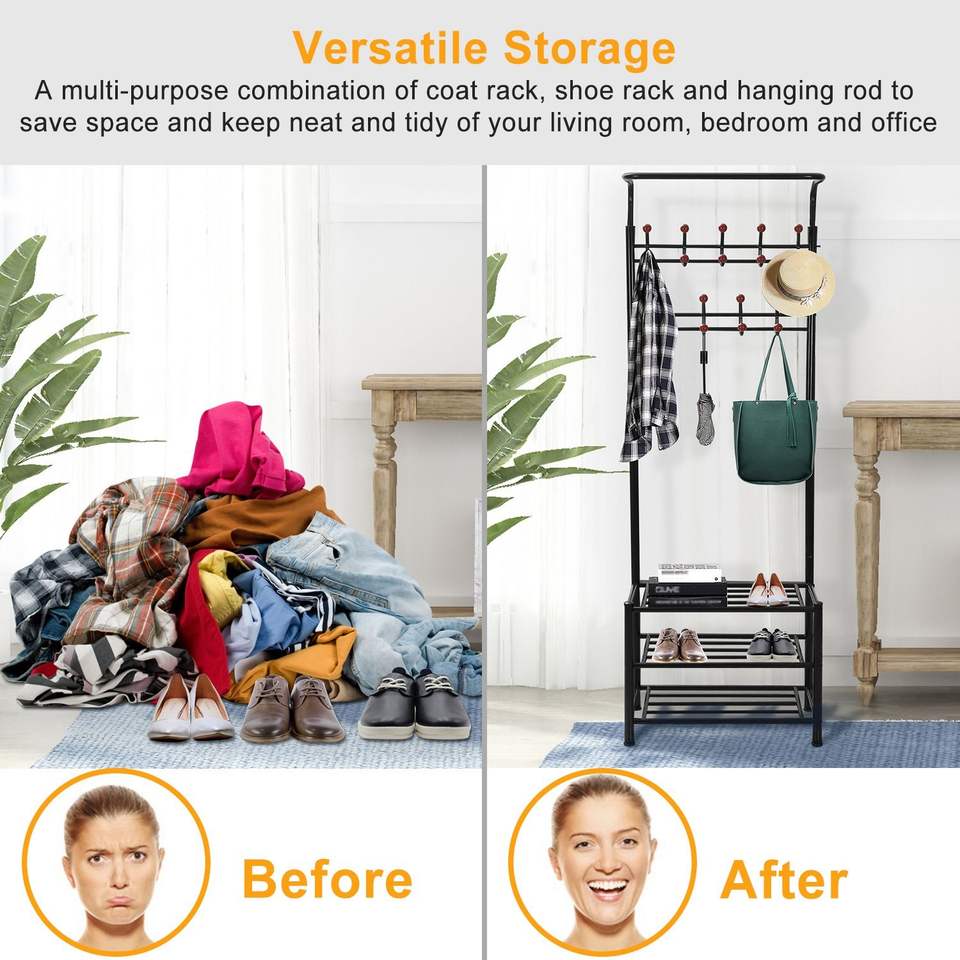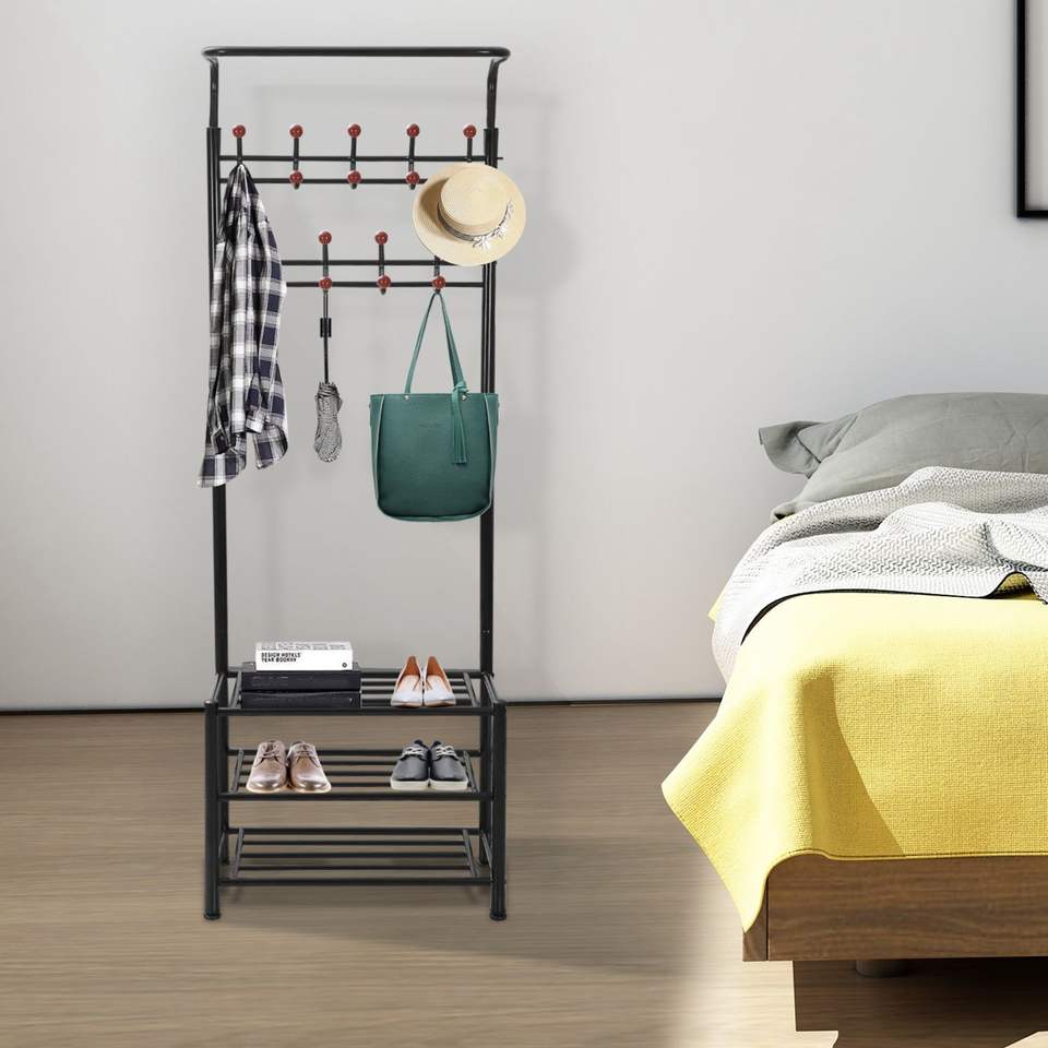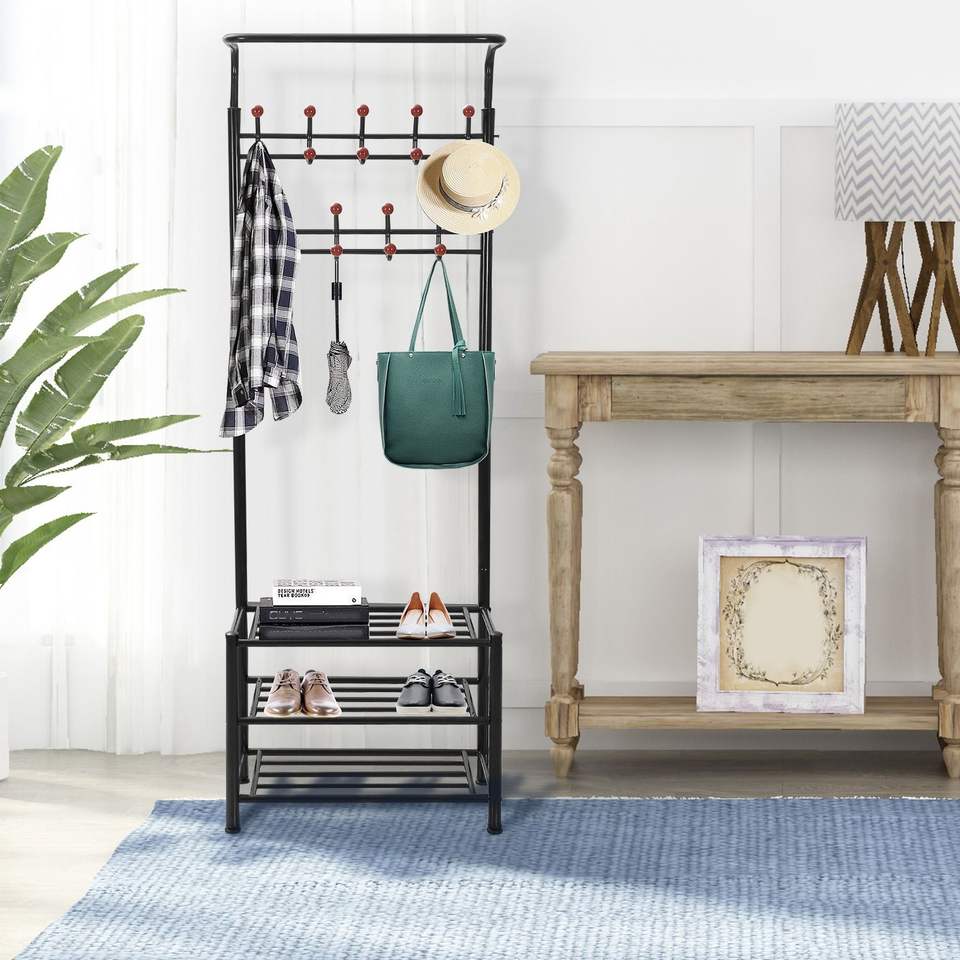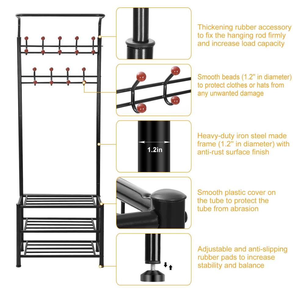 Appendiabiti da Ingresso in Metallo con 18 Ganci, Scarpiera a 3 Livelli da Appendere Sopra la Porta con 30 Scomparti per Scarpe e 18 Ganci per Cappotti e Cappelli