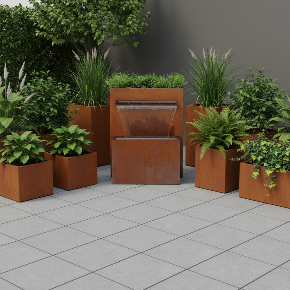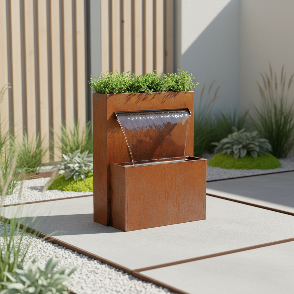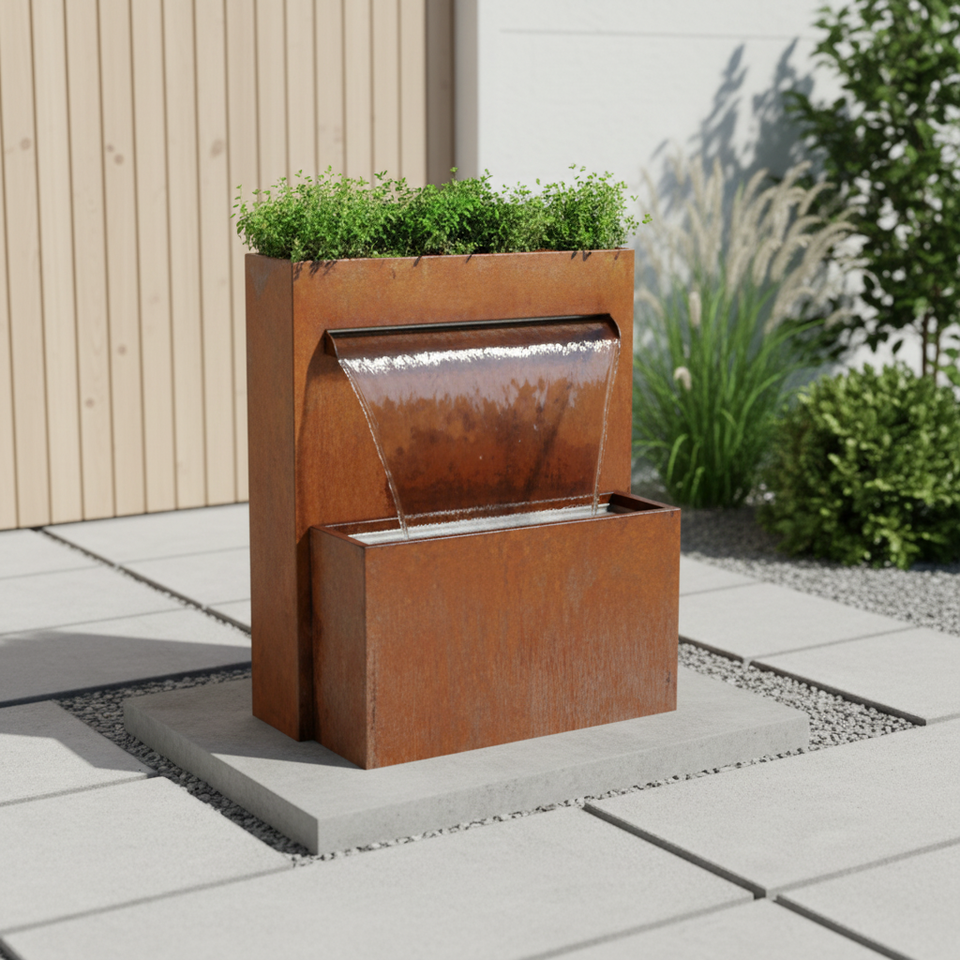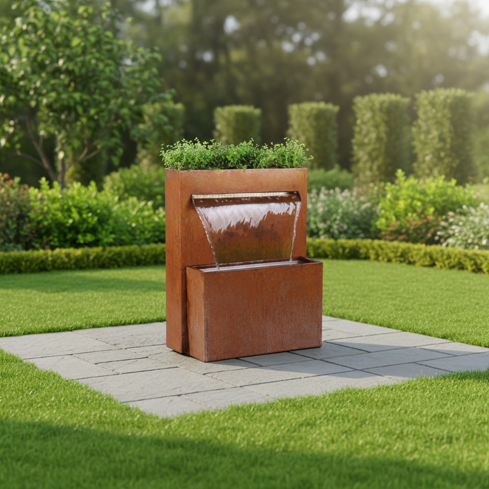 Fontana a Cascata in Metallo Artificiale Impermeabile Rettangolare per Interni/Esterni, Illuminata a Energia Solare, Facile da Installare