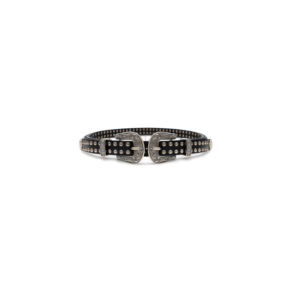 Cintura in Metallo 2.5x100cm con Doppia Fibbia Stile Western Accessorio di Moda