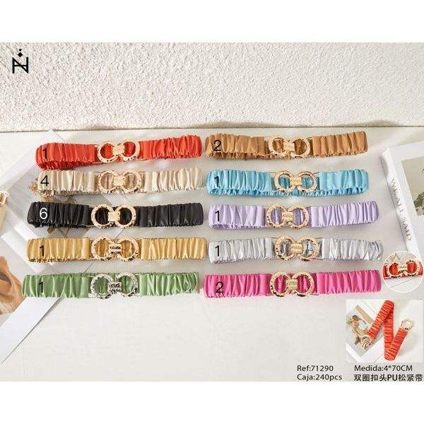 Cintura in Metallo 47cm con Doppio Anello, Elastico in PU, Cinture Moda Donna