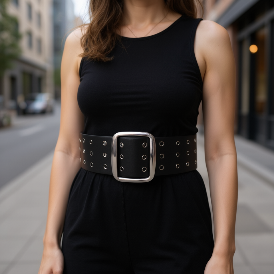 Cintura in Metallo Angelina 6,5cm 100cm con Fibbia Argento, Accessorio Moda per Donna