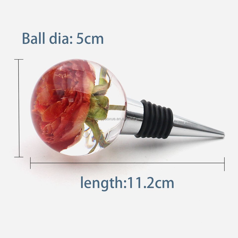 Tappo per Bottiglia in Metallo, Tappo per Vino Personalizzato in Acciaio Inox, Sfera in Resina con Fiori Secchi all'Interno, Arte in Resina