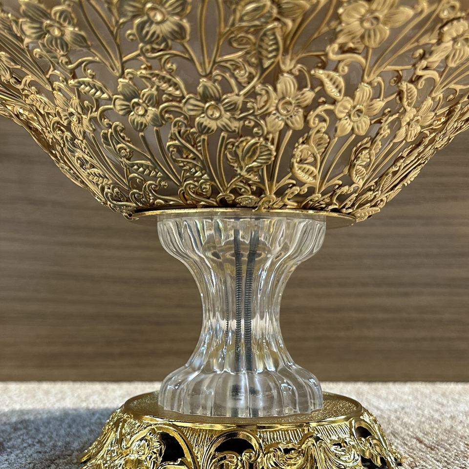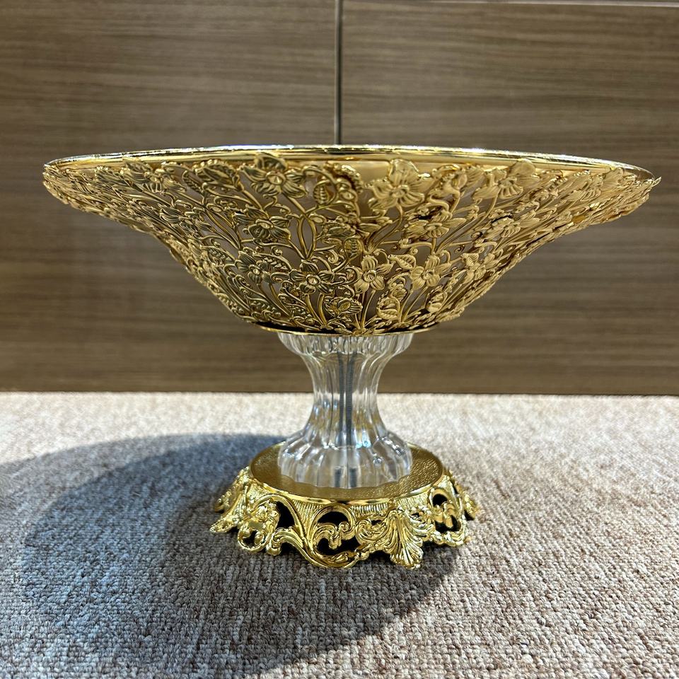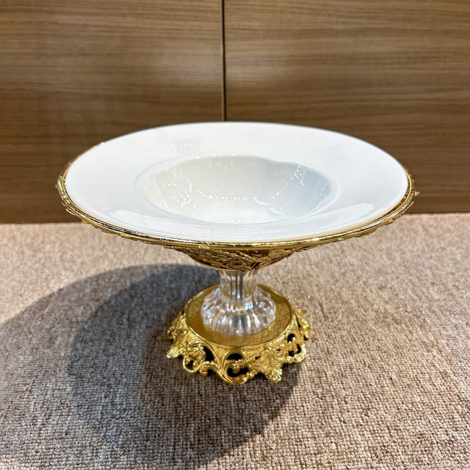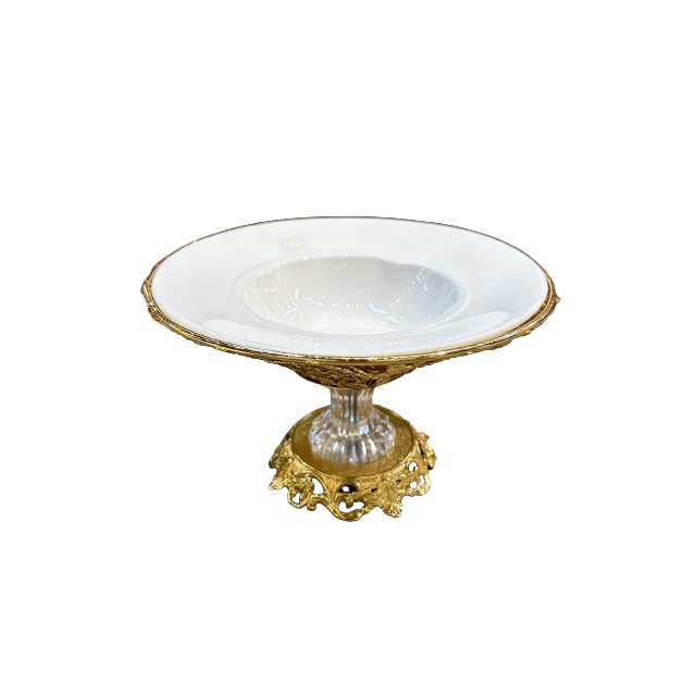 Metallo con manico in metallo, ciotola rotonda di frutta e caramelle