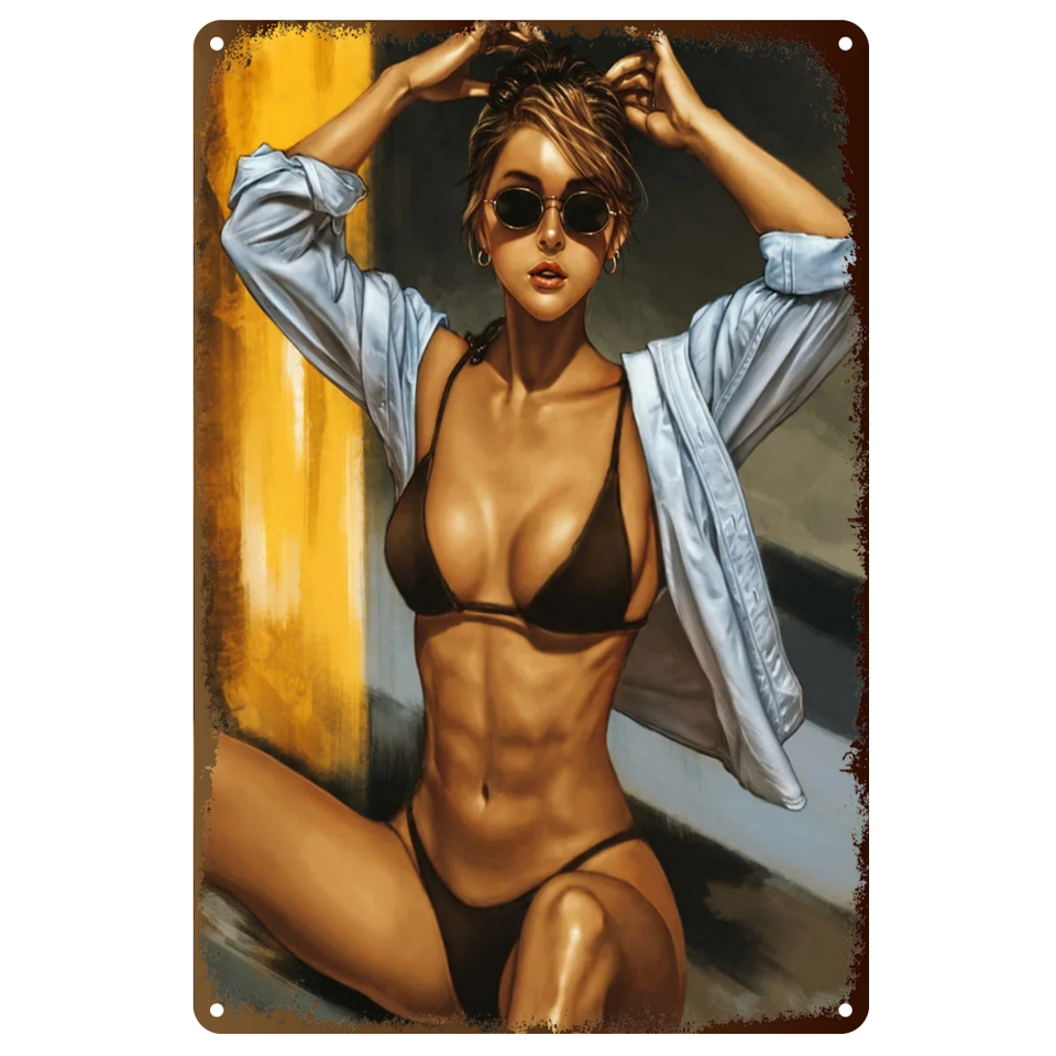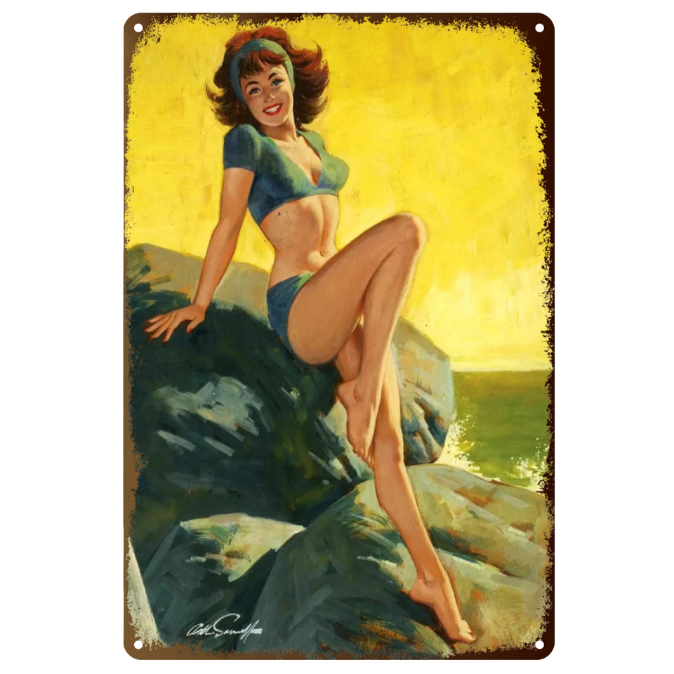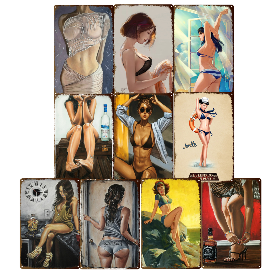 Poster in Metallo Pin-up Girl, Insegna Retrò, Bella Ragazza, Targa in Latta, Decorazione da Parete per Pub, Caffè, Casa 30x20cm