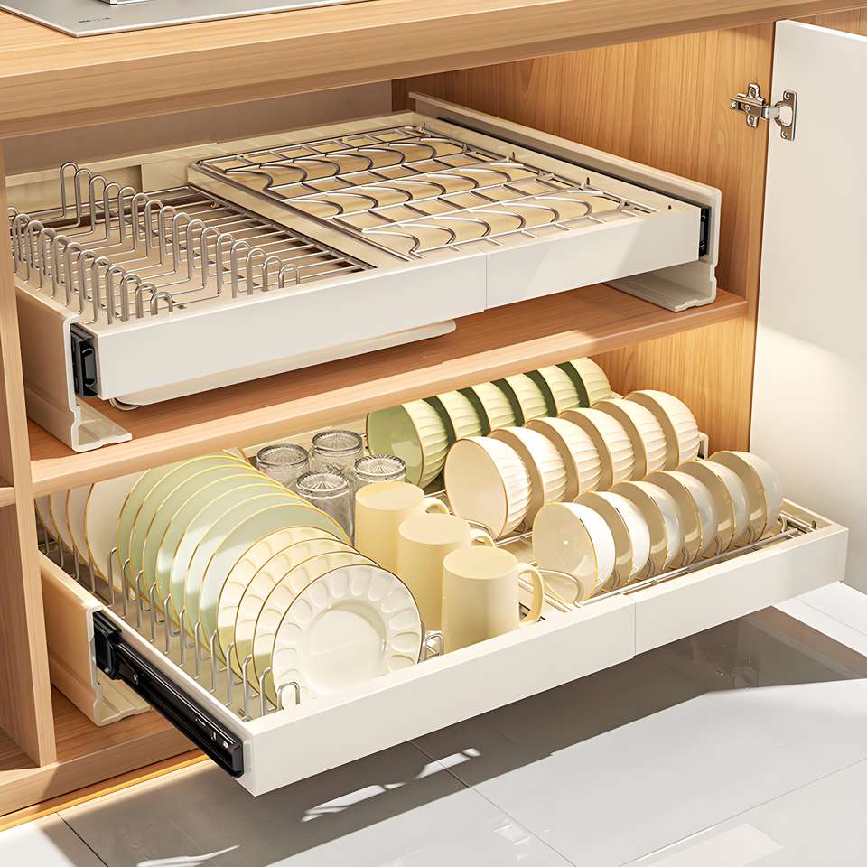 Metal Pull-out Under Sink Dish Rack Cupboard Scalable Escurridor De Platos Box Cutlery Shelf Sliding Drawer Cup Storage Holder