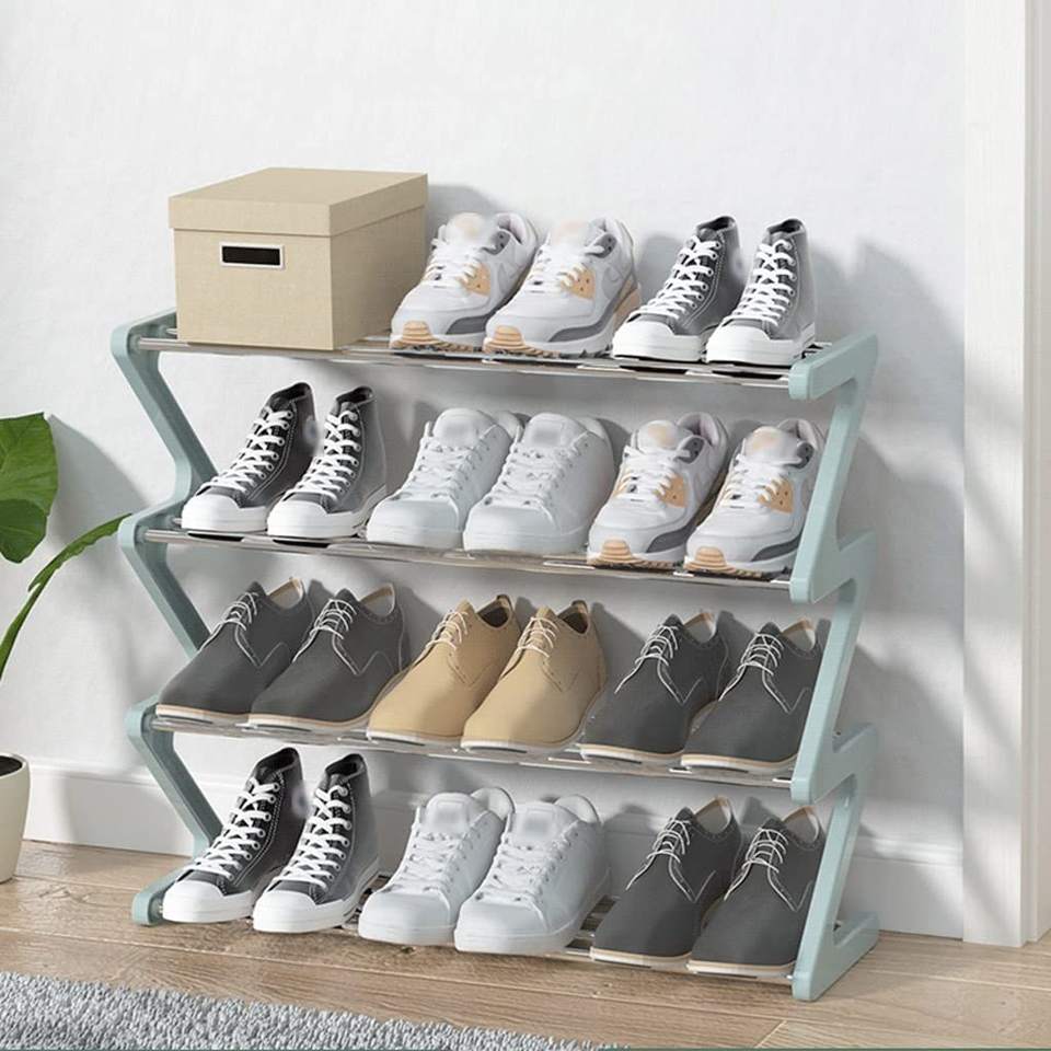 Portaoggetti in metallo per scarpiera 8-10 paia a forma di Z 3 livelli per scarpiera impilabile Organizer