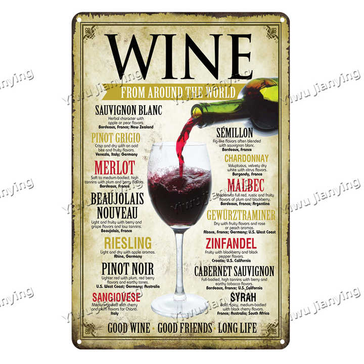 Segno di metallo vino da tutto il mondo segno di latta Vintage Poster modello per uomini donne decorazione di arte della parete bar per la casa club caffè festa