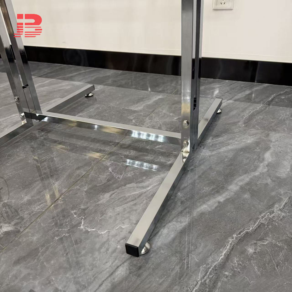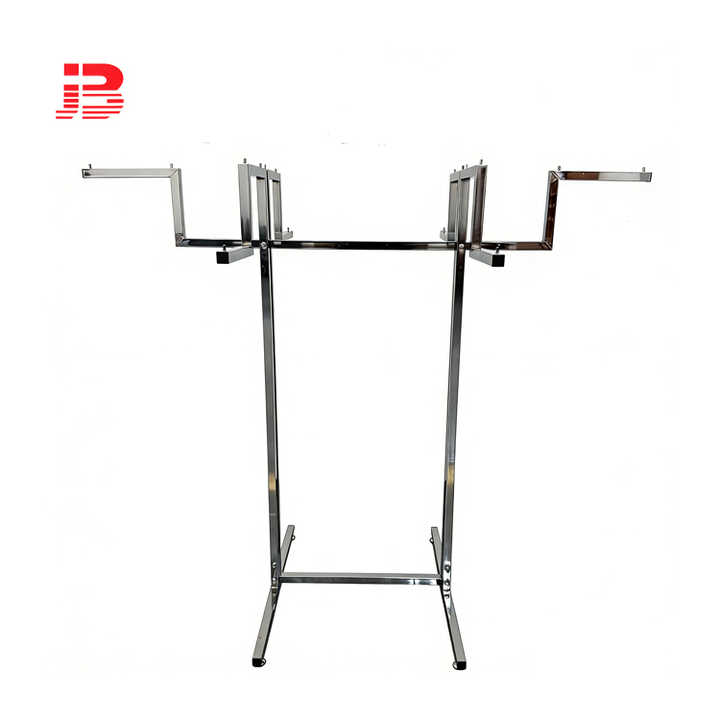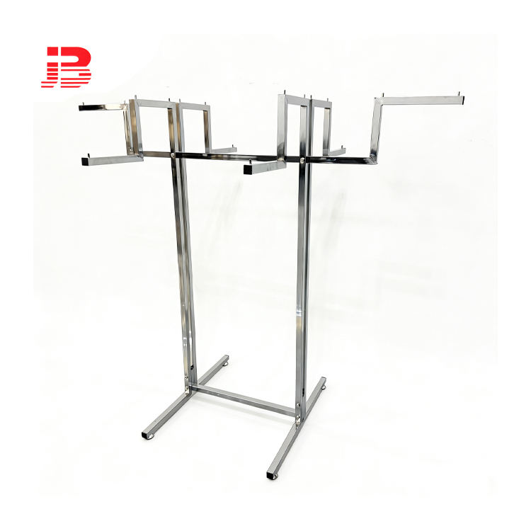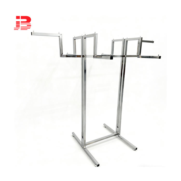 Espositore Metallico Quadrato per Negozio di Abbigliamento con 6 Bracci Dritti, Appendiabiti Cromato per Boutique