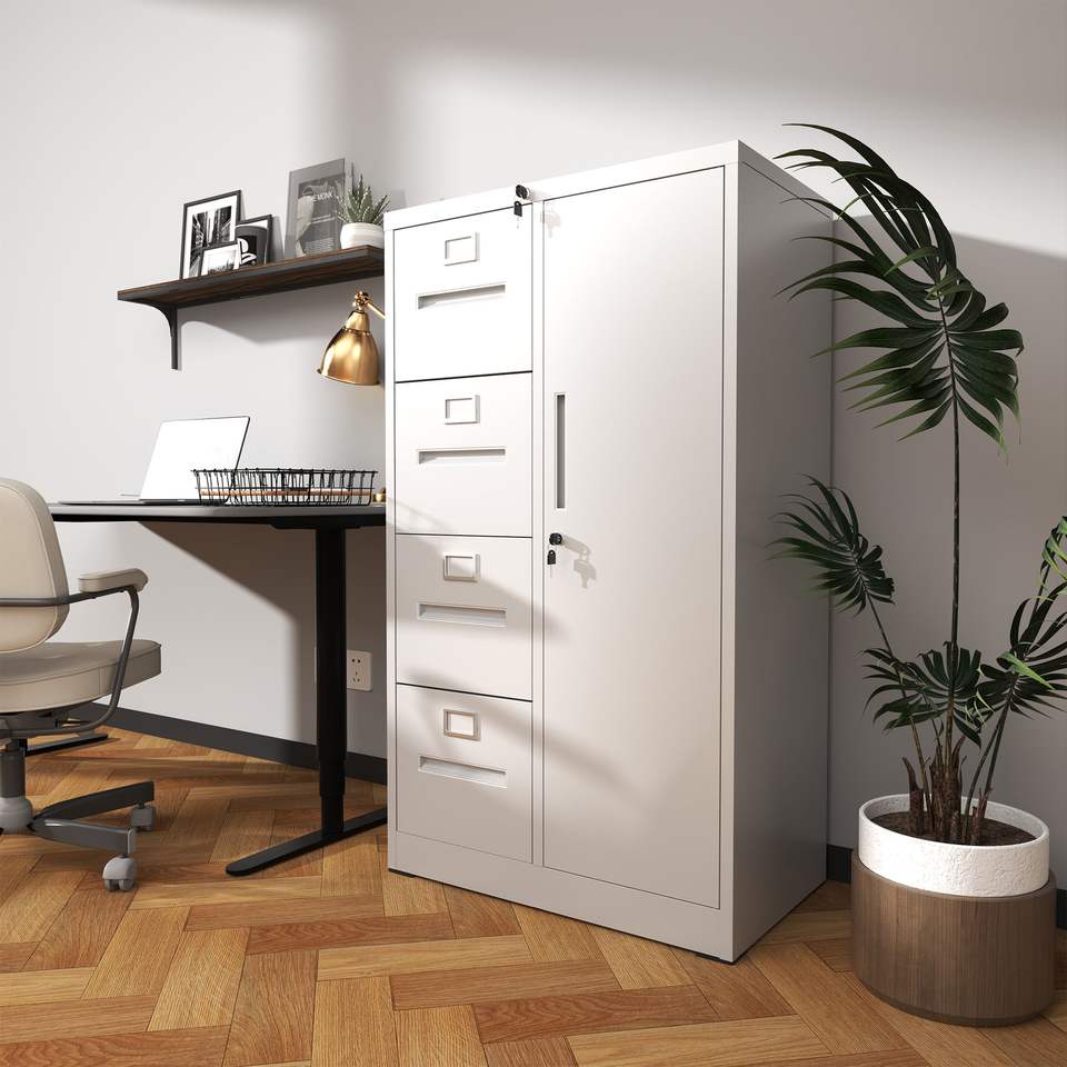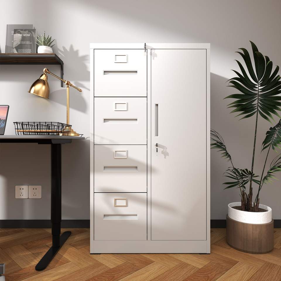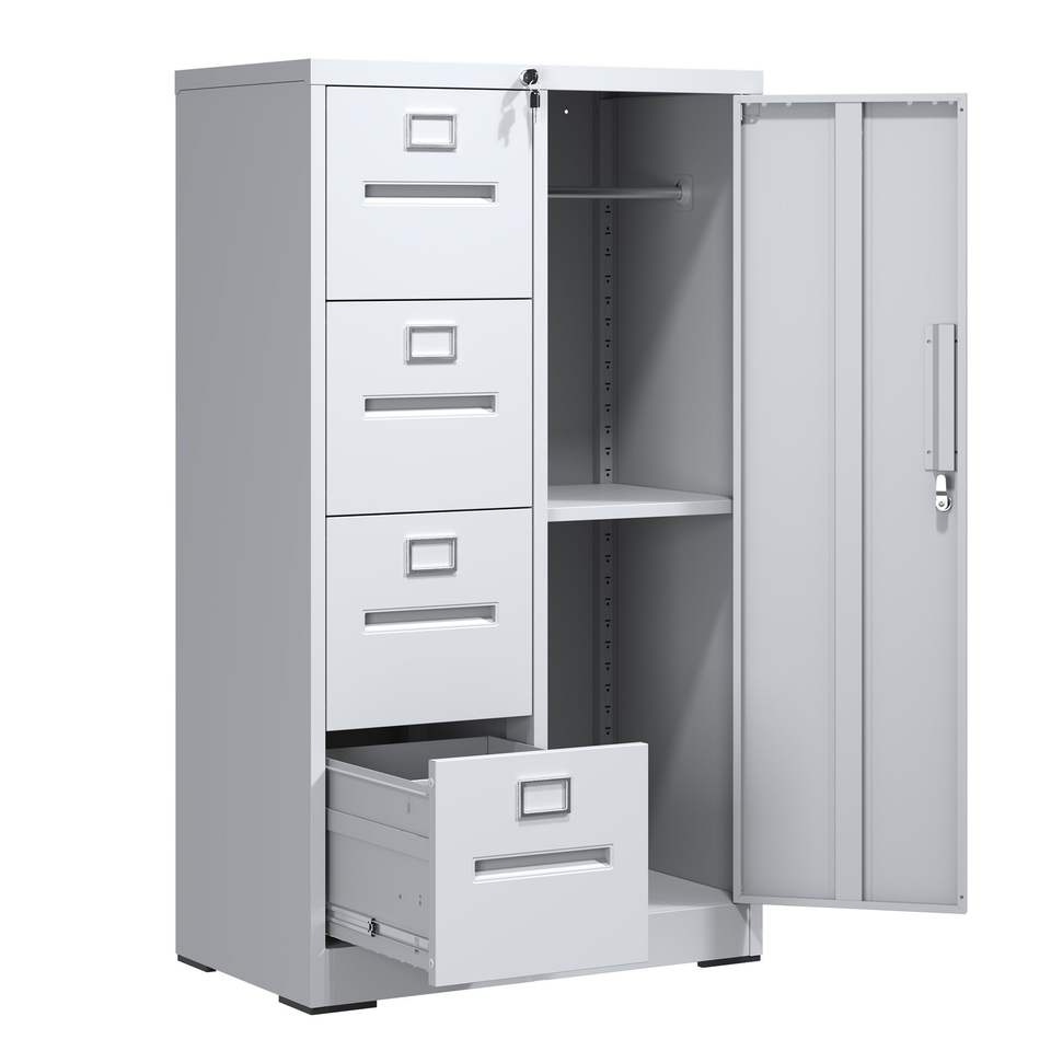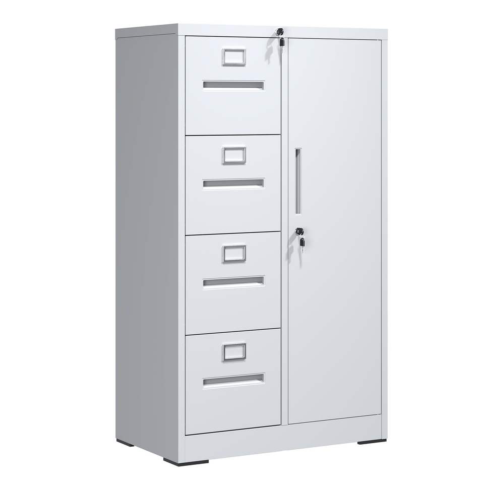 Armadietto Verticale in Metallo con Serratura, 4 Cassetti e 1 Anta in Acciaio per Scuola, Soggiorno, Camera da Letto