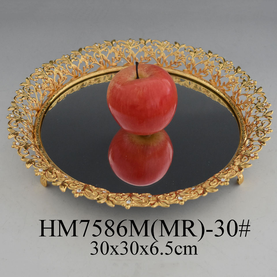 Metallo regalo di nozze piatto di caramelle decorazione della casa dello specchio rotondo a forma di vassoio di frutta