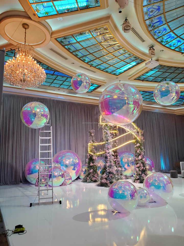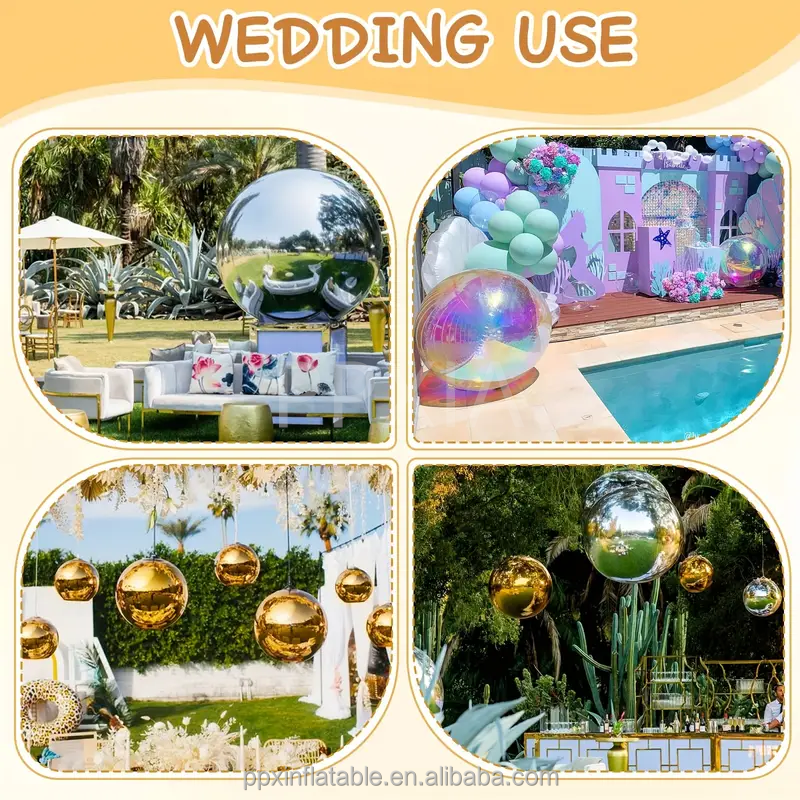 Palla metallica iridescente decorazione grande gigante lucido gonfiabile in argento colorato globo gonfiabile sfera gonfiabile specchio palloncino