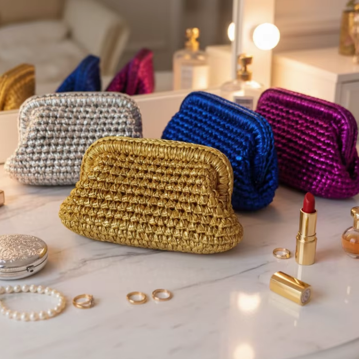 Borse da Sera per Donna con Motivo Pelle di Serpente Metallizzata, Realizzate a Mano in Materiale Poliestere di Lusso, con Tracolla a Catena