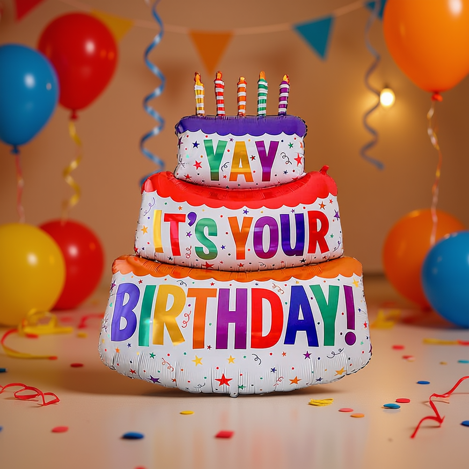 Palloncino in lamina metallica a forma di torta di compleanno da 102 cm per decorazioni per feste per bambini