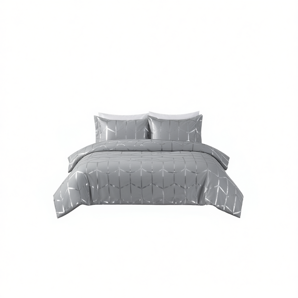 Set Copripiumino Moderno con Stampa Metallica 4 Pezzi Jacquard per Arredamento Casa