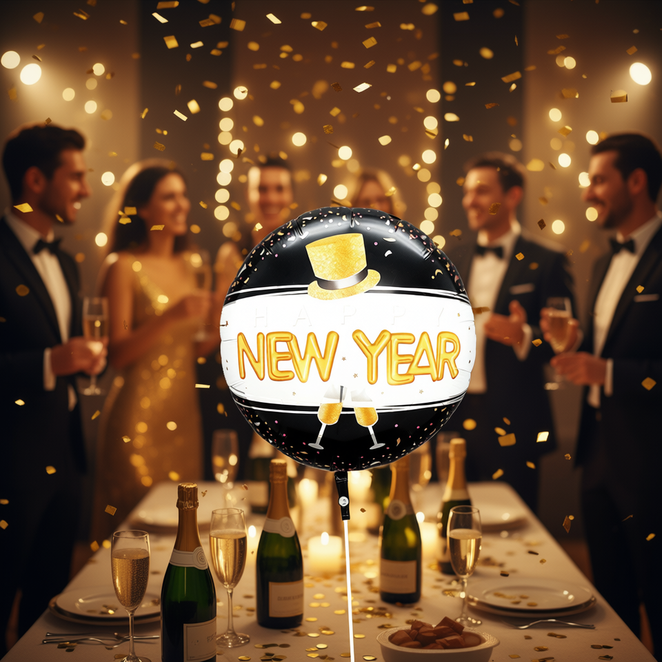 Palloncino Metallico Rotondo per Capodanno 45X51Cm Design 'Felice Anno Nuovo' Decorazione per Feste