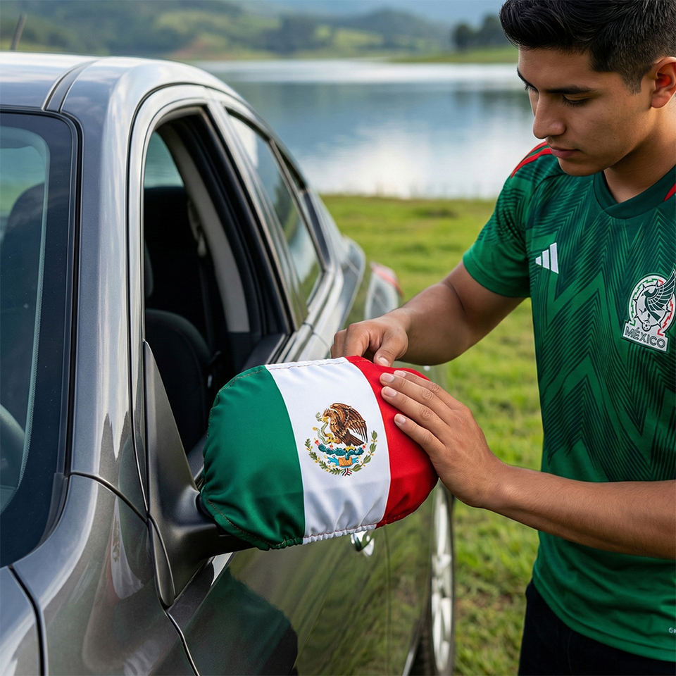 Copri Specchietti con Bandiera Messicana, Coppia di Accessori Durevoli ed Eleganti