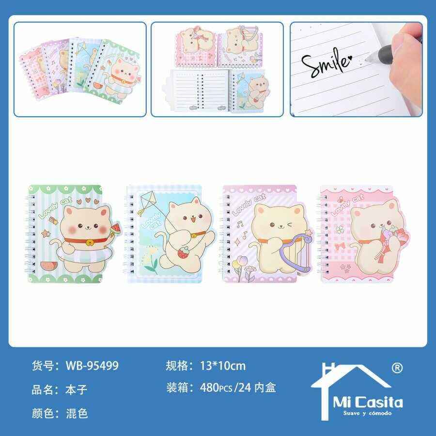 Mi Casita Spiral Notebook Lined Pages Cartoon Cat Design For Writing School Use
