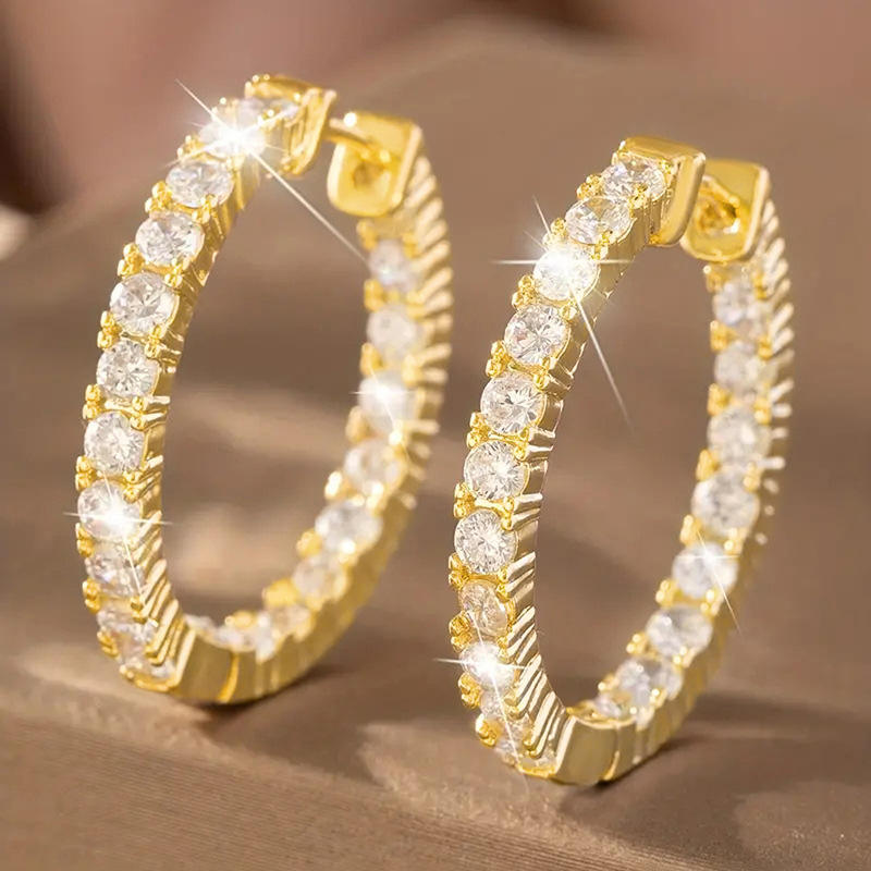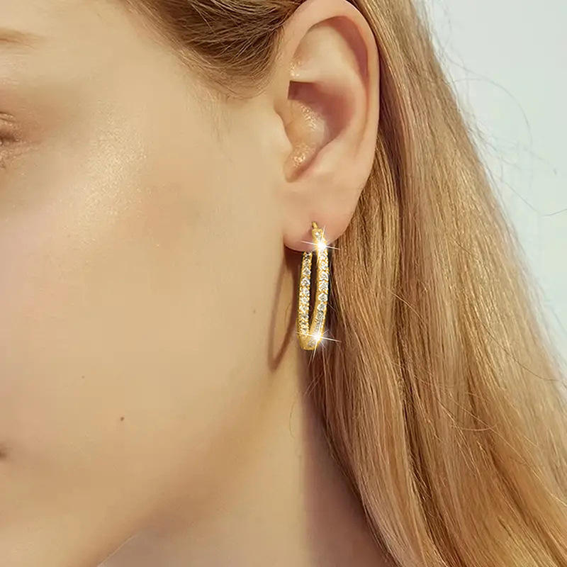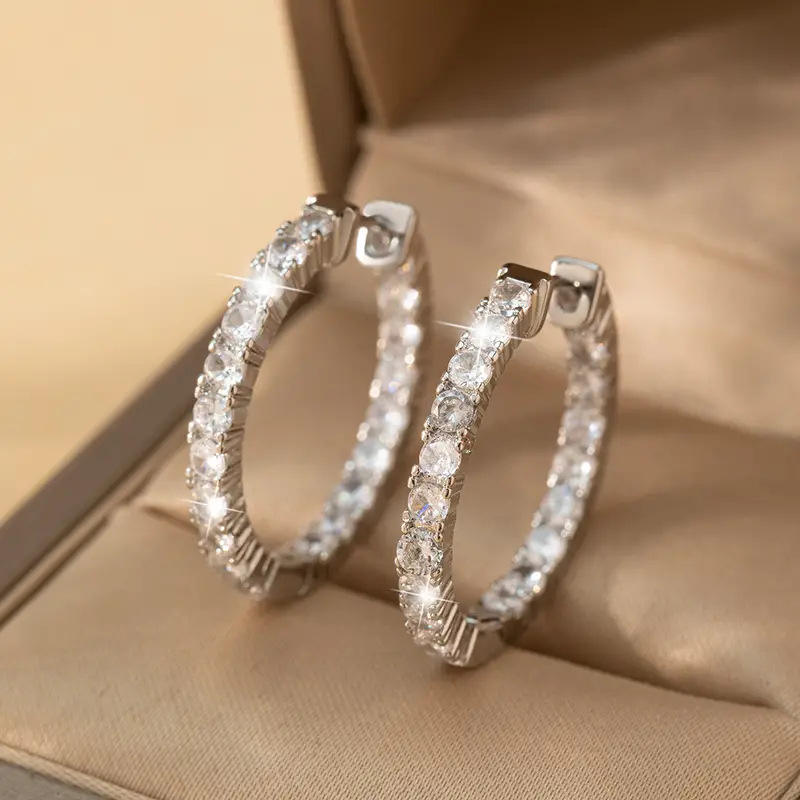 Orecchini a Cerchio Mia Cielo in Argento 925 con Cristalli e Strass, Incastonatura a Canale, Gioielli Classici da Donna per Uso Quotidiano