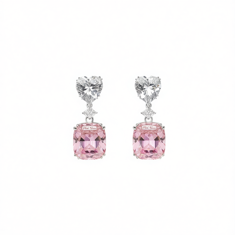 Mian Jana Crystal Drop Earrings 925 Silver Heart Rose Quartz Claw Setting Romantic Wedding Women's Jewelry
