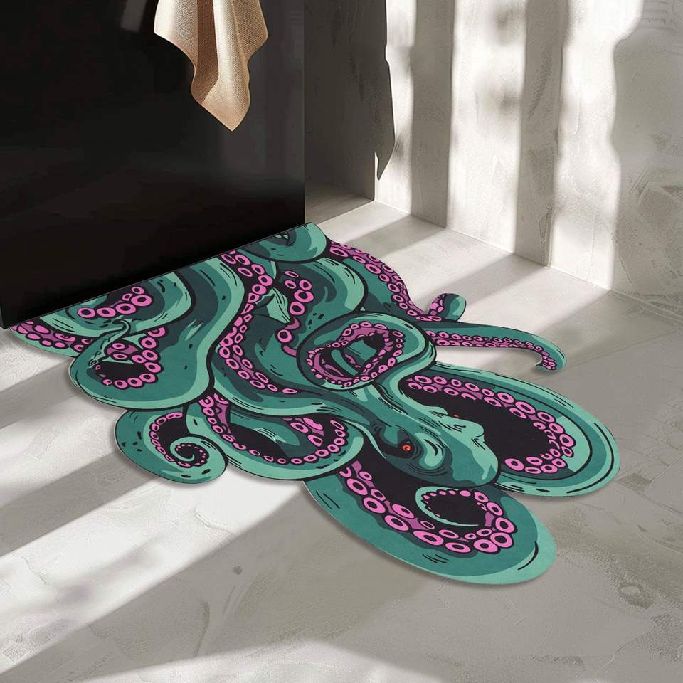 Tappetino da Bagno in Microfibra Assorbente a Forma di Polpo, Antiscivolo, Decorazione Unica per le Feste, Regalo