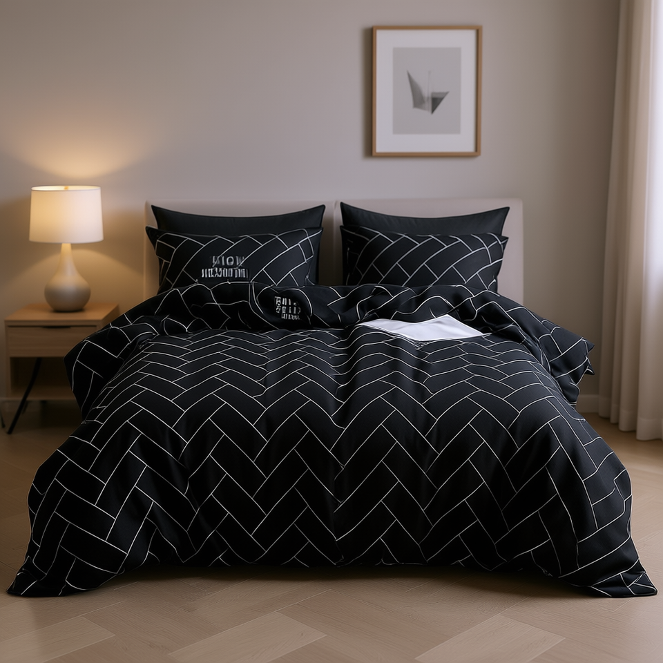 Set di Biancheria da Letto in Microfibra Moderno, Motivo Mattoni Bianco e Nero, per Letto Singolo, Matrimoniale e King Size, Morbido e di Facile Manutenzione, per Uso Domestico, Copripiumino e Lenzuola per Tutte le Stagioni