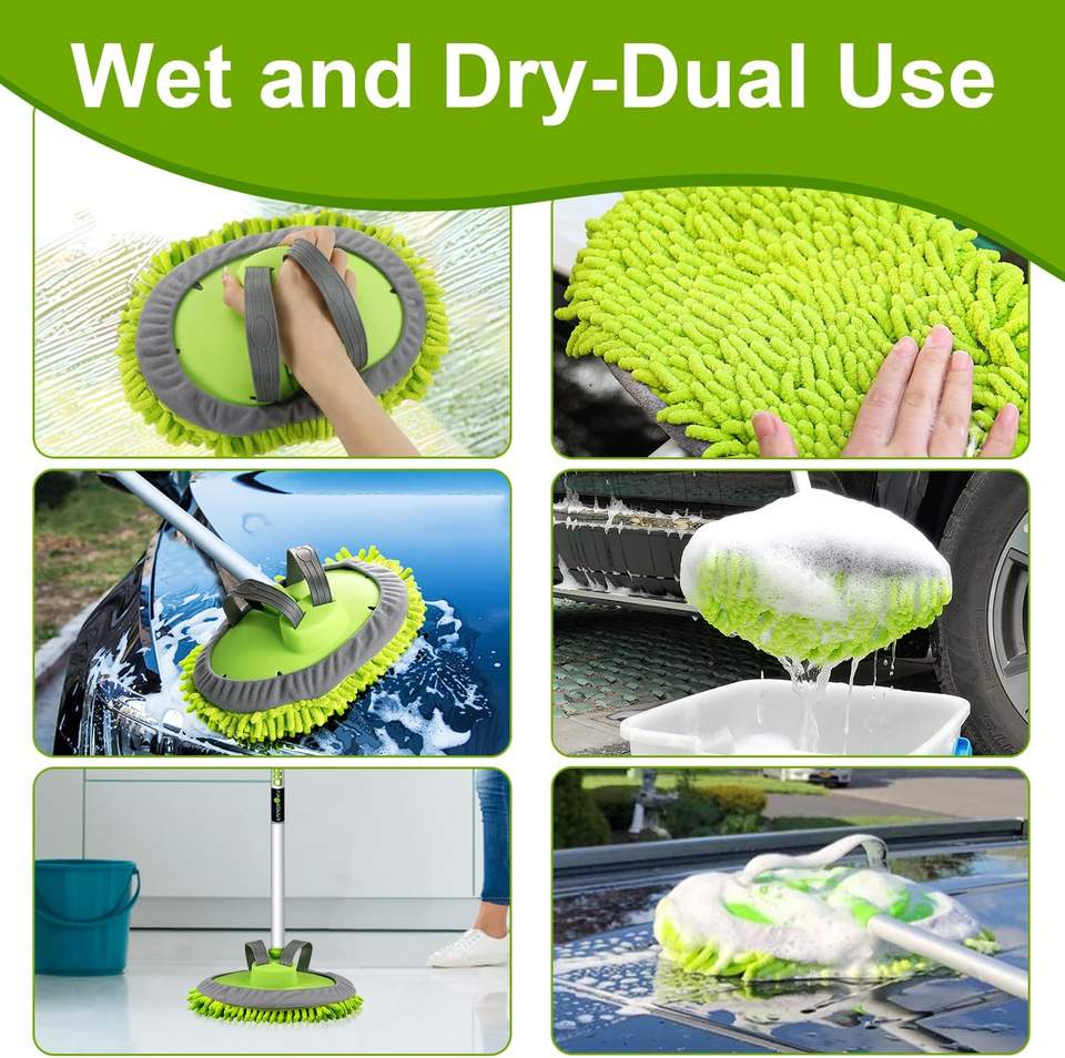 Microfiber Car Wash Brush Mop Kit Mitt Sponge with Long Handle Car Cleaning Supplies Kit Duster Washing Car Tools Accessories