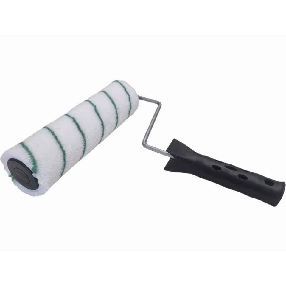 Microfiber DIY Roller Brush 12 White & Double Green Stripe Fixed Handle HQ Polyester 230 mm Diameter 42 Mm-OEM Customizable