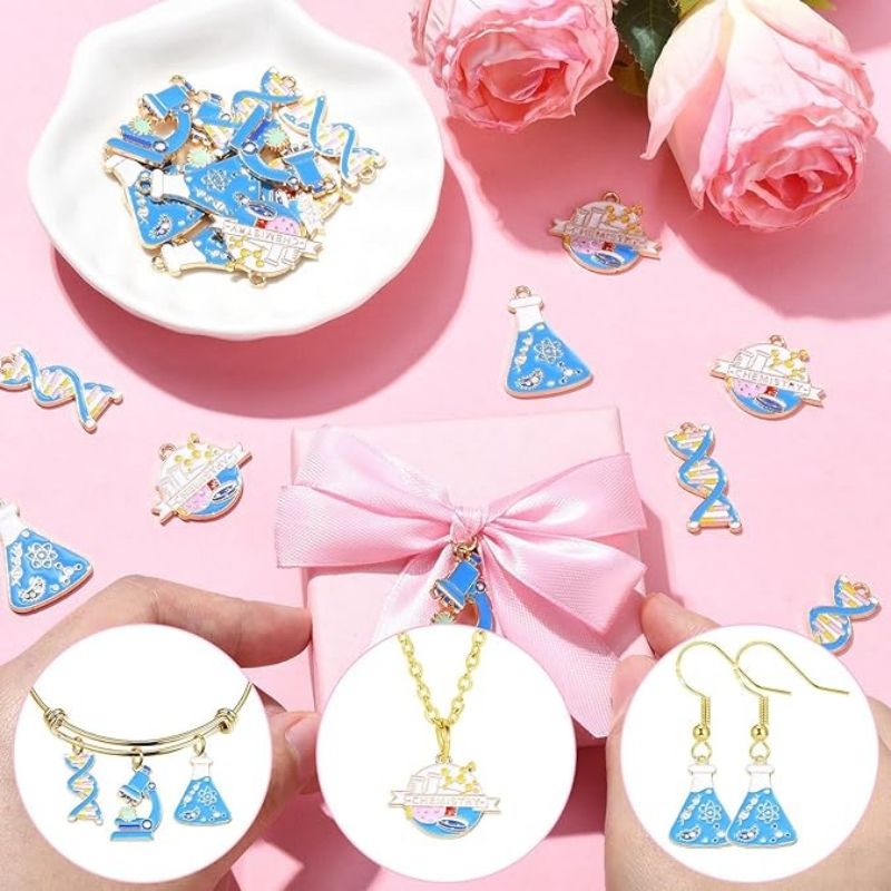 Ciondoli a Forma di Microscopio per Laboratorio Scientifico, per Creazione di Gioielli Fai-da-Te per Bambini, Charm Smaltati per Chimica