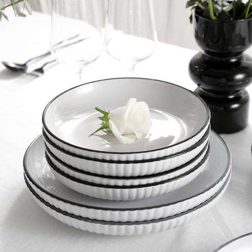 Piatto in ceramica per la cena e il piatto da Dessert 7 '8 '9 pollici Design europeo stile semplice con striscia bianca nera materiale ceramico
