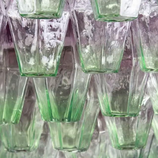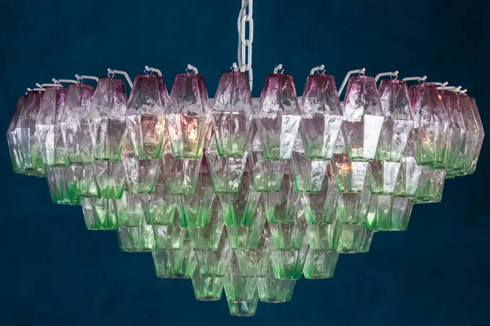 Collezione Venini del Mid-20th secolo Murano sorprendente Poliedri lampadario in vetro soffiato Murano rosa e verde per sala da pranzo