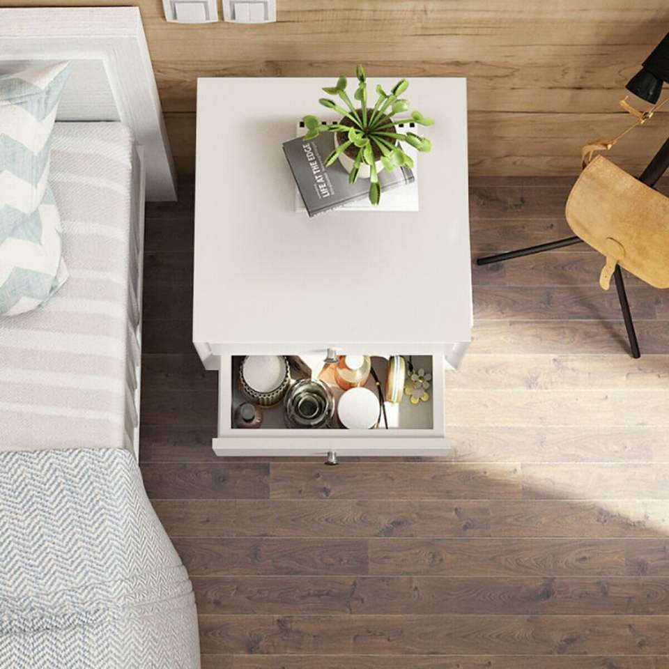 Tavolino Laterale in Legno Stile Mid-Century con 2 Cassetti Contenitori, Comodino Multiuso