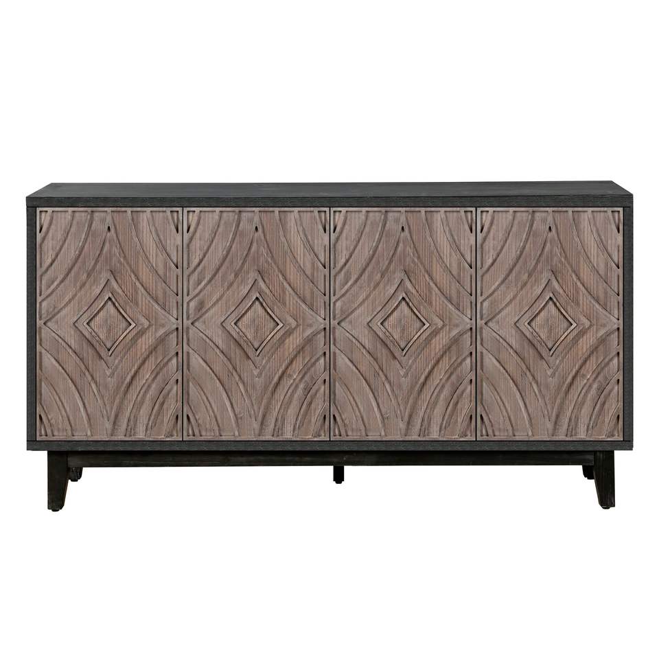 Credenza Buffet in Legno Massello Stile Mid-Century da 60 Pollici con 4 Motivi a Diamante Convessi per Cucina