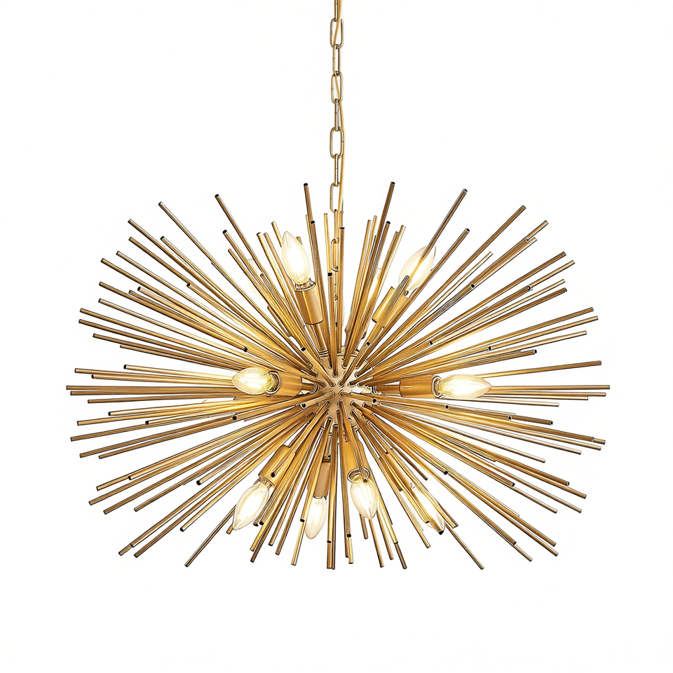 Mid Century Modern 12 Light Starburst Chandelier 29 Inch Gold Pendant Light Fixture For Living Room Dining Room Foyer