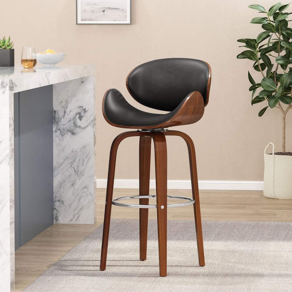 Metà secolo moderno 30 \ "sgabello da bar girevole mezzanotte noce nero imbottito